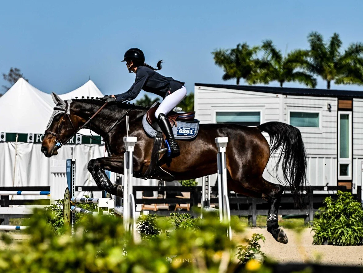 WEF 5 (February 6-11, 2024) was Lekka's and Picobella's first official outing in the Modifieds. The mare's natural scope and stride mean that Athena must adjust her riding style to the more technical courses of this division. With a focus on pacing and jumping accurately, they completed their first ever round in the $1,500 Children's Modified Jumpers with just a single rail to finish 9th. The next day, they finished 8th in the $2,500 Children's Modifieds, this time with a single rail in the jump-off and super smooth rounds.